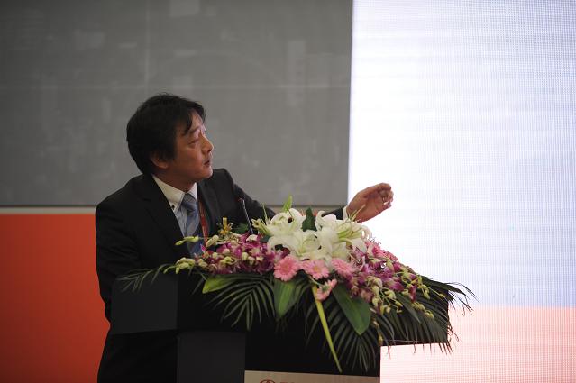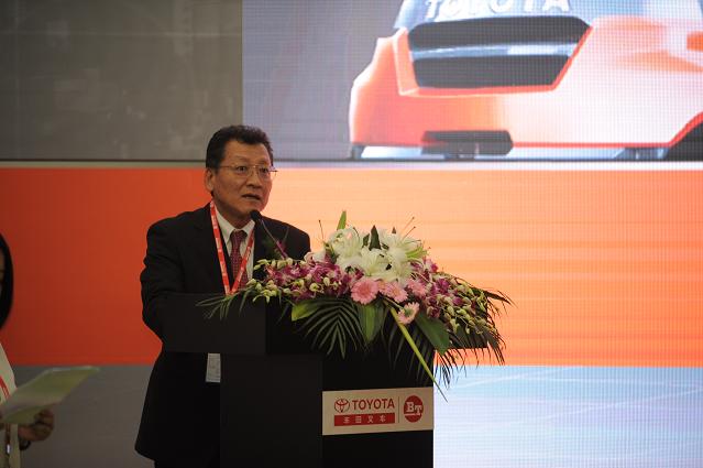 丰田产业车辆(上海)有限公司营业本部本部长松本滋先生为来宾介绍了3款新车的导入背景)