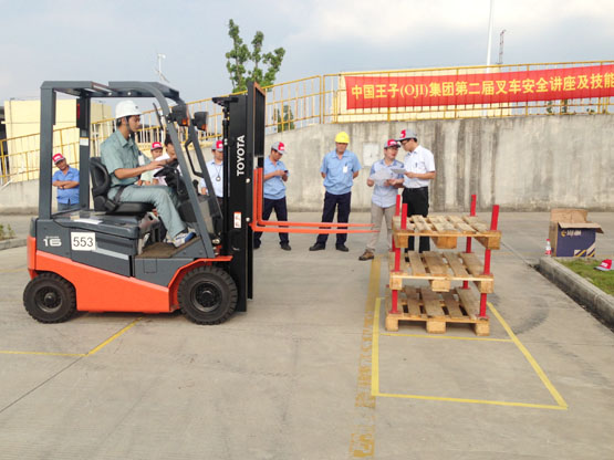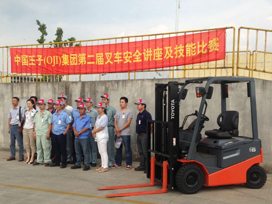 2015年9月17日,丰田叉车与王子集团携手举办了叉车操作安全技能比赛。比赛在丰田叉车昆山新工厂举行。王子制纸妮飘,王子物流,昆山王子过滤制品,王子奇能纸业,王子包装,王子特殊纸等王子集团系统的多家公司参与了此次比赛,来自王子管理部的中井副总经理出席了此次比赛。丰田产业车辆渡边总经理在现场表示,非常感谢王子集团长久以来对丰田叉车的支持和信赖,并将继续通过提供优质的产品和丰田独有的安全操作培训、丰田管理相关的基础培训等附加价值服务,更好的回馈像王子集团这样的优质客户。