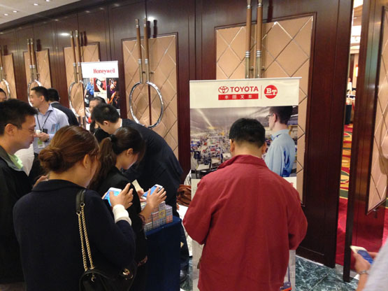 演讲结束后,众多嘉宾纷纷来到丰田位于会议现场的展台,进一步咨询车队管理系统的问题。另外,丰田叉车还为在场来宾准备了精美的小礼品,邀请大家参与官方微信的平台互动。