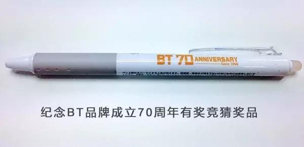 答对就可以获得BT70周年纪念笔一支(日本进口可擦水笔)